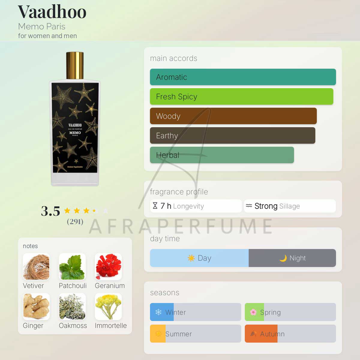 عطر ادکلن ممو وادو-Memo Vaadhoo برای تمام فصول بخصوص بهار مناسب می باشد.همچنین برای استفاده روزمره توصیه شده است.