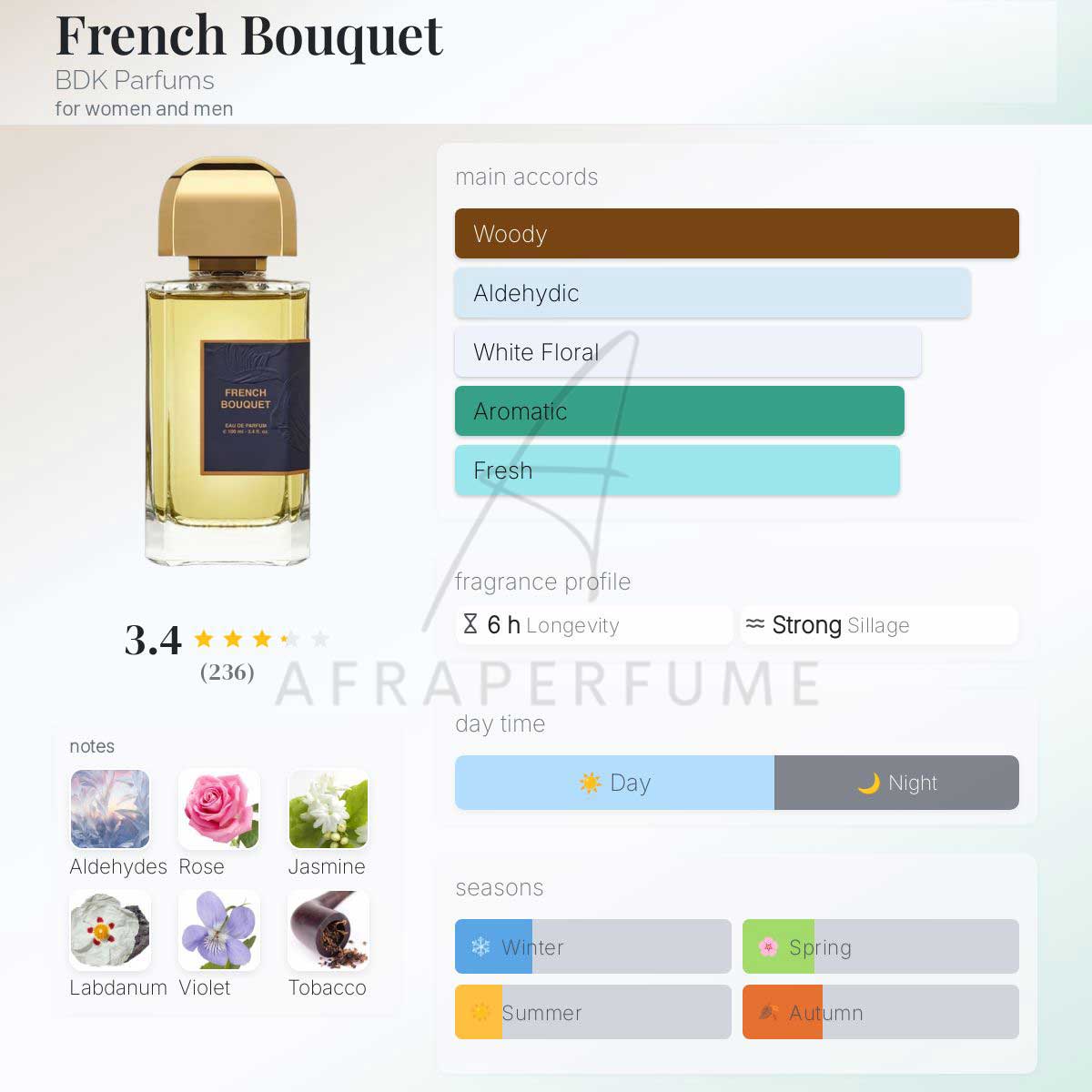 عطر ادکلن بی دی کی پارفومز فرنچ بوکت | BDK Parfums French Bouquet مناسب فصول سرد و معتدل سال است. همچنین در امور روزمره بکار میرود.